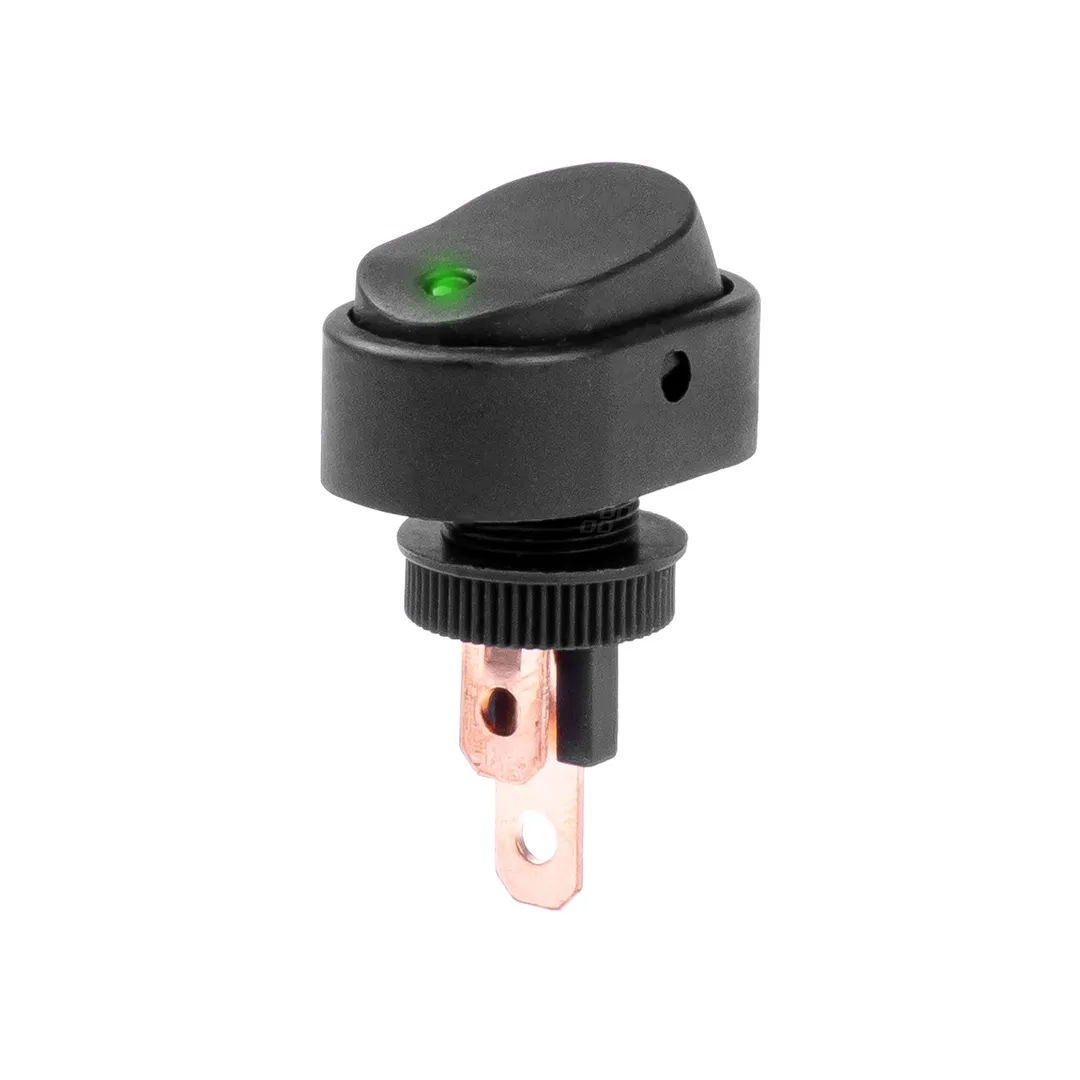 Întrerupător eliptic cu lumină verde 12/24 V DC 30 A Negru Amio