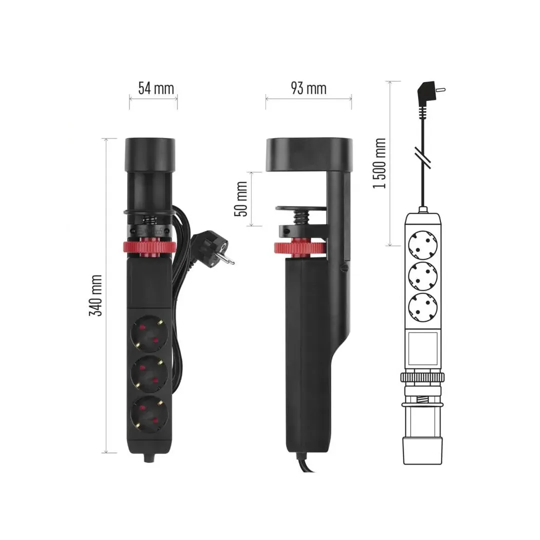 Prelungitor de birou cu împământare și întrerupător 3 prize 2 m 16 A Scame