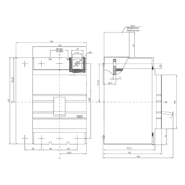 Întreruptor automat IEK VA88-35 3P 160 A 400 V A