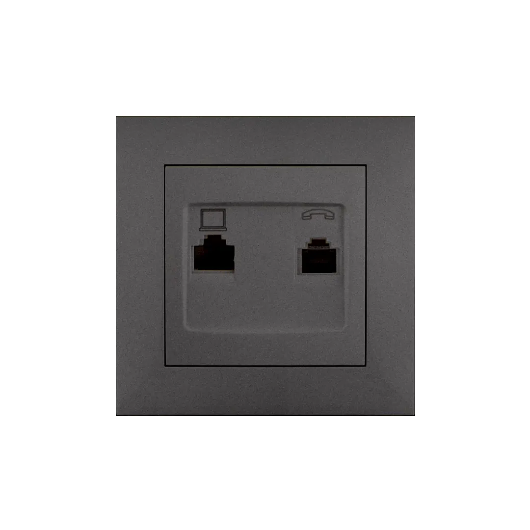 Двойная розетка RJ45+RJ11 rosa 10 A антрацит Elmos