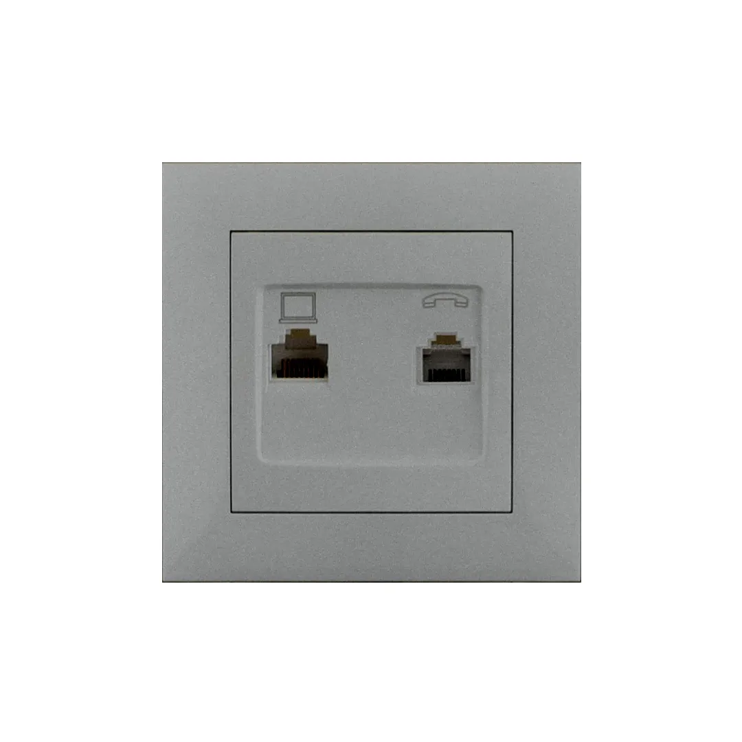 Двойная розетка RJ45+RJ11 rosa 10 A титановый Elmos