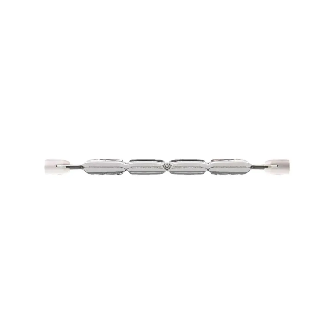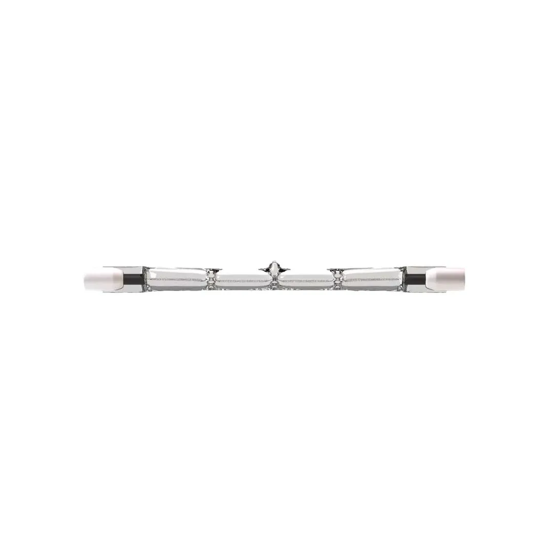 Lămpile halogene lineare sunt un analog direct al lămpilor halogene tubulare standard. Firul de încălzire este în formă de spirală și un tub incolor din sticlă de cuart, două socluri. Suporturile firelor de încălzire sunt foarte rezistente și nu se supun acțiunilor mecanice. Lămpile cu o putere de 500 W le poziționati după bunul plac, iar cele mai puternice doar orizontal. Ele păstrează culoarea naturala a obiectelor și au un randament mare. Durata medie de viață este de 8000 de ore. Becul este cu tijă, numarul care urmează după literă indică distanța dintre tije.